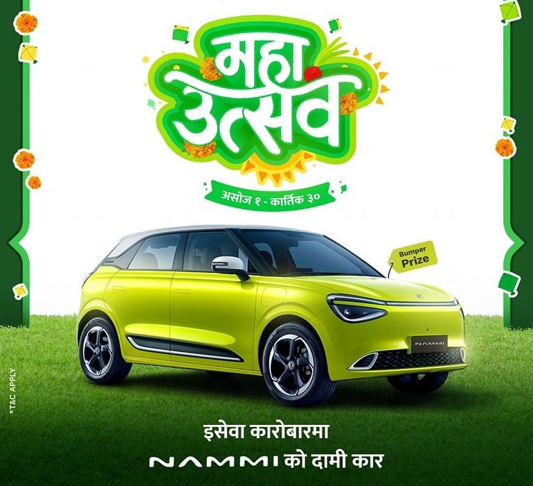 १ असोज, काठमाडौँ । नेपालकै पहिलो तथा अग्रणी भुक्तानी सेवा प्रदायक कम्पनी इसेवाले यसपालिको दशै-तिहार र छठ पर्व लक्षित गरेर “इसेवा महा-उत्सव: इसेवाको कारोबारमा NAMMI को दामी कार ” अफर सार्वजनिक गरेको छ। यस अफर अन्तर्गत असोज १ देखि कार्तिक ३० गतेसम्म इसेवाबाट जुनसुकै कारोबार गर्ने प्रयोगकर्ताहरू मध्ये एक भाग्यशाली प्रयोगकर्ताले नयाँ नामी इलेक्ट्रिक कार जित्न सक्नेछन्।
