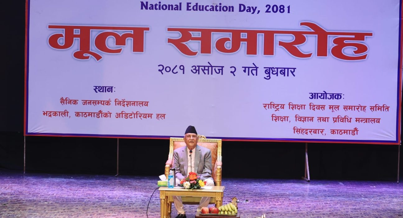 राष्ट्रिय शिक्षा दिवस, २०८१ मूल समारोह समितिको कार्यक्रमलाई आज सम्बोधन गर्दै प्रधानमन्त्री ओलीले हाल कायम रहेको शिक्षा क्षेत्रको पछ्यौटेपन हटाउन सरकार लागिपरेको जनाउँदै अनलाइन कक्षाबाट विद्यार्थीलाई मुख्य विषयहरु पढाएर एसइईको नतिजामा उल्लेख्य सुधार गर्न थालिएको बताएका हुन् ।