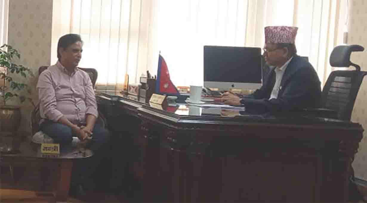 २ असोज, काठमाडौँ । भौतिक पूर्वाधार तथा यातायातमन्त्री देवेन्द्र दाहाल र वरिष्ठ कलाकार हरिवंश आचार्यबीच आज छलफल भएको छ । सिंहदरबारस्थित मन्त्रालयमा उनीहरुबीच विकास निर्माण र सरकारका कामलाई कसरी जनमुखी तथा प्रभावकारी बनाउन सकिन्छ भन्ने बारेमा छलफल भएको हो ।