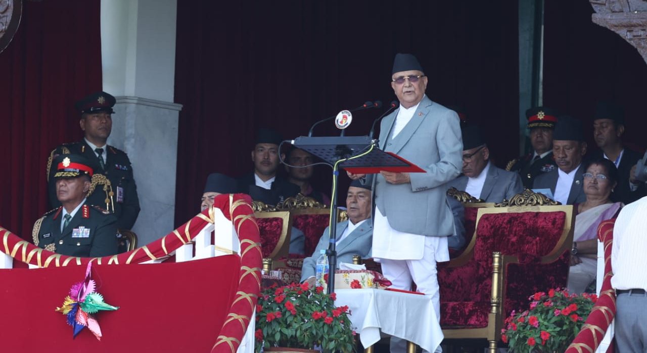 बिहीबार सैनिकमञ्च टुँडिखेलमा संविधान दिवसको मूल समारोहलाई सम्बोधन गर्दै प्रधानमन्त्री ओलीले विकासका लागि स्थायित्व चाहिने उल्लेख गर्दै वर्तमान सरकार संविधानलाई समयानुकल बनाउन लागिपरेको बताए ।