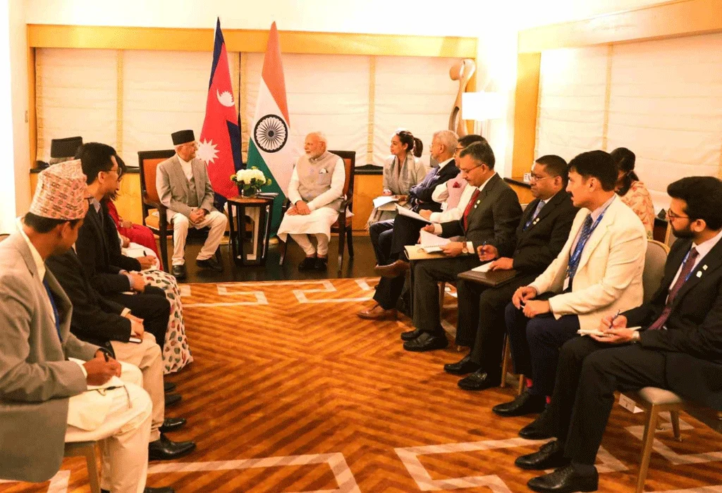 ७ असाेज, न्युयोर्क (अमेरिका) ।  संयुक्त राष्ट्रसङ्घको ७९औँ महासभामा भाग लिन नेपाली प्रतिधिमण्डलको नेतृत्व गर्दै संयुक्त राज्य अमेरिकाको न्युयोर्कमा रहेका प्रधानमन्त्री केपी शर्मा ओली र छिमेकी भारतका प्रधानमन्त्री नरेन्द्र मोदीबीच आज द्विपक्षीय भेटवार्ता भएको छ । उनीहरूबीच दुवै मुलुकका विदेशमन्त्री र अन्य अधिकारीसहित टोते न्युयोर्क प्यालेस होटलमा भेटवार्ता भएको हो ।