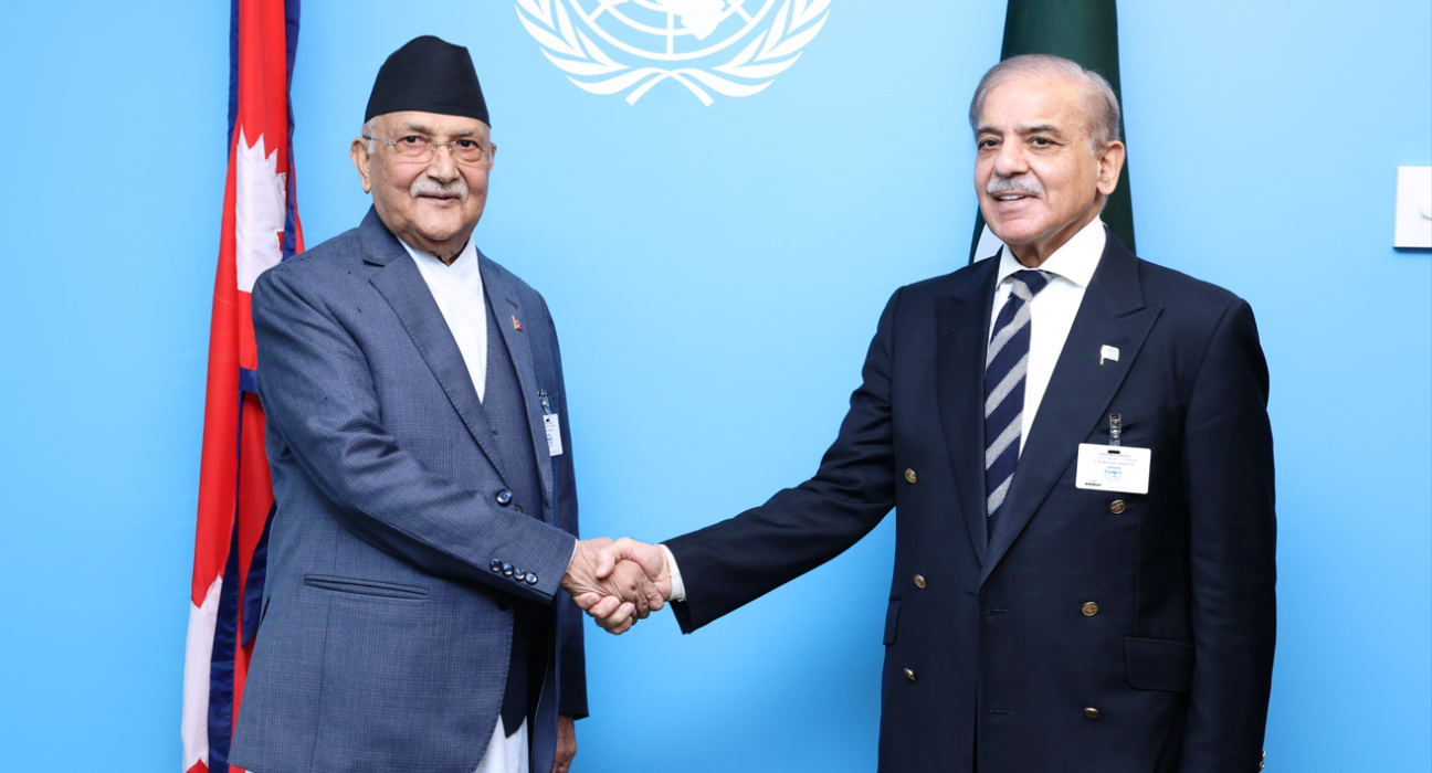 ११ असाेज, काठमाडौँ । संयुक्त राष्ट्रसङ्घको ७९औँ महासभामा भाग लिन नेपाली प्रतिनिधिमण्डलको नेतृत्व गर्दै अमेरिकाको न्युयोर्कमा रहनुभएका प्रधानमन्त्री केपी शर्मा ओलीसँग पाकिस्तानका प्रधानमन्त्री सेहबेज शरिफको भेटवार्ता भएको छ ।