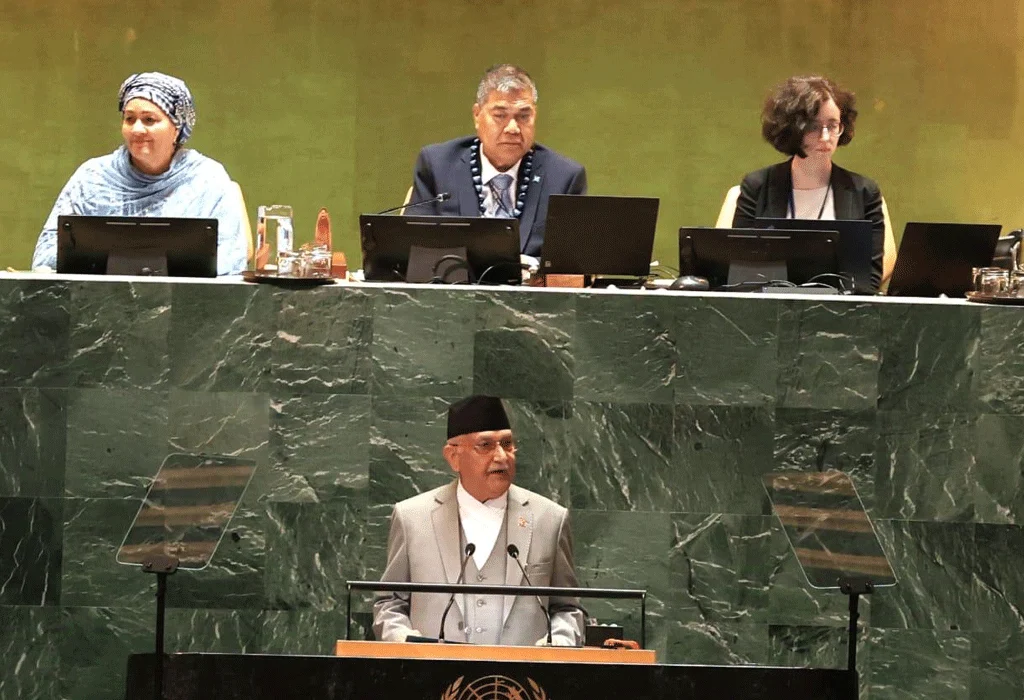 प्रधानमन्त्री ओलीले भने, “सामूहिक इच्छाशक्ति र एकीकृत कार्यद्वारा मात्र हामी यो प्रवृत्तिलाई उल्टाउन सक्छौँ र सबैका लागि दिगो शान्ति र साझा समृद्धिको युग प्रारम्भ गर्न सक्छौँ ।” यस सन्दर्भमा महासभाको उक्त सत्रको विषयवस्तु ‘कसैलाई पछाडि नछाडिने: वर्तमान र भावी पुस्तालाई शान्ति, दिगो विकास र मानवीय प्रतिष्ठाको उन्नतिका लागि एकजुट भएर काम गरौँ’ भन्ने आदर्श वाक्य समयोचित भएको बताए ।