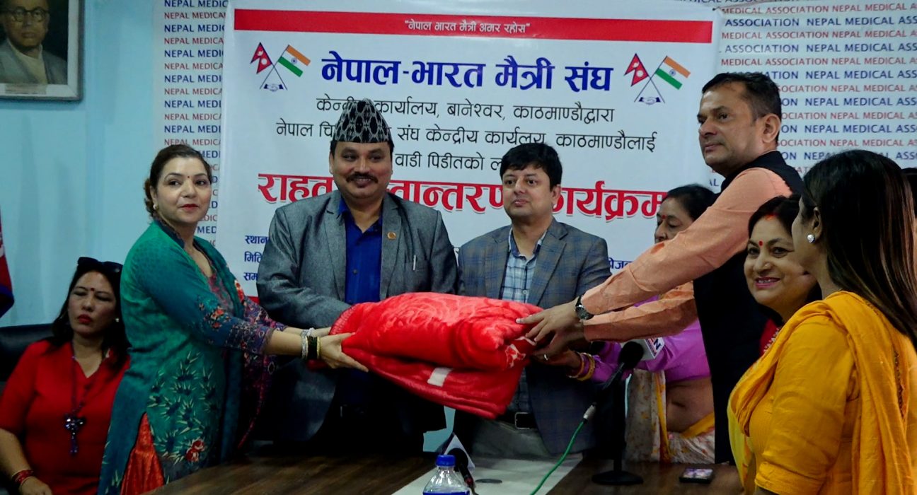त्यस्तै चिकित्सक संघका अध्यक्ष डा.अनिल विक्रम कार्कीले नेपाल–भारतमैत्री संघले हस्तान्तरण गरेको राहत स्वास्थ्य सेवासँगै जोडेर पीडितलाई उपलब्ध गराउने जानकारी गराए ।