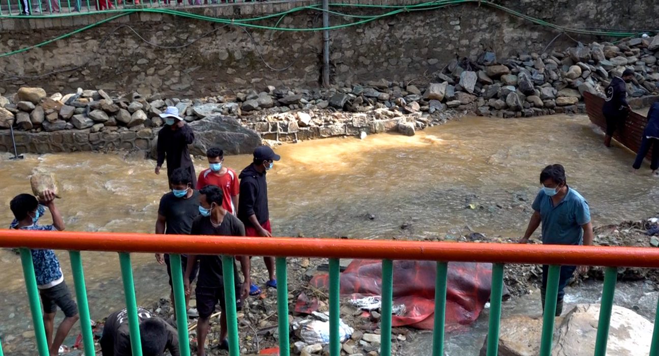 दक्षिणकाली(काठमाडौं)। गत शुक्रबार र शनिबार गएको भिषण बाढी पहिरोमा काठमाडौंस्थित दक्षिणकाली मन्दिरमा ठूलो क्षति भएपछि स्थानीय सरसफाइ र संरक्षणमा जुटेका छन् ।