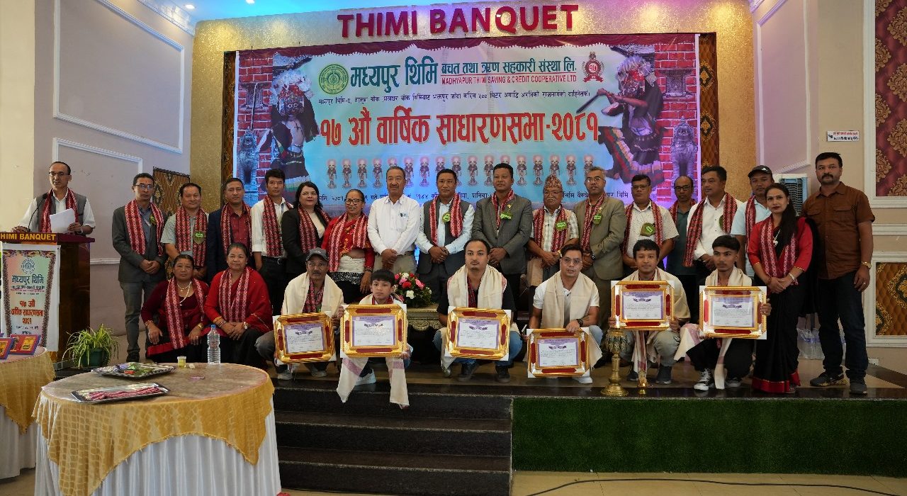 संस्थाको १७ औं वार्षिक साधारणसभामा थिमि भैलः २०८१ व्यवस्थापन समितिका माइला प्रजापति तथा कलाकारहरु क्रमशः तृशल प्रजापति (ज्यापुंगः), अशोक प्रजापति (न्हापा भैलः), बाल मुकुन्द प्रजापति (लिपा भैलः), आयुष प्रजापति (न्हापा दागिं) र शाहील प्रजापति (लिपा दागिं)लाई दोसल्ला ओडाएर कदरपत्रसहित सम्मान गरेको हो ।
