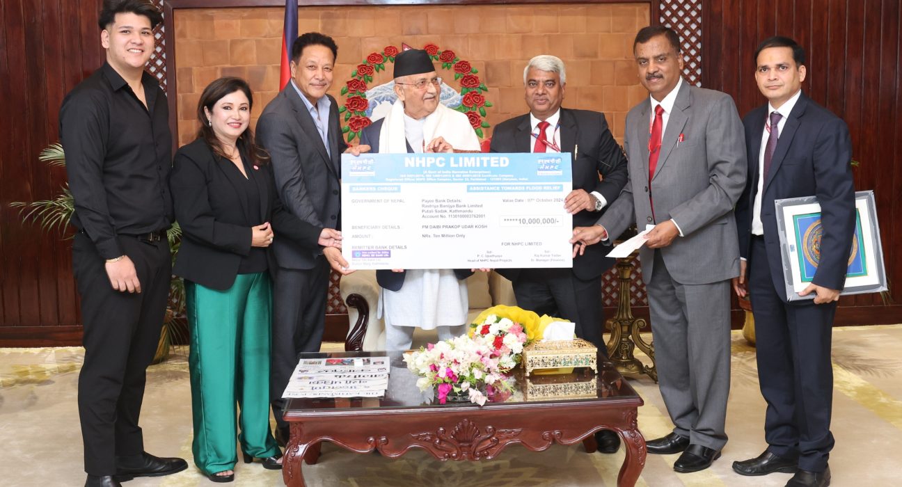प्रधानमन्त्री निवास बालुवाटारमा छिमेकी भारतको सबैभन्दा ठुलो जलविद्युत कम्पनी राष्ट्रिय हाइड्रोपावर कर्पारेसन एनएचपिसी लिमिटेडका वित्त निर्देशक आरपी गोयलबाट रु एक करोड, अरुण तेस्रो जलविद्युत आयोजना लिमिटेडका प्रमुख कार्यकारी निर्देशक प्रशान्त शर्माबाट रु एक करोड, प्रभु बैँकका अध्यक्ष देवीप्रसाद भट्टचनबाट रु १ करोड र प्राइम कमर्सियल बैँकका अध्यक्ष राजेन्द्रदास श्रेष्ठबाट रु ३१ लाखको चेक हस्तान्तरण भएको छ ।