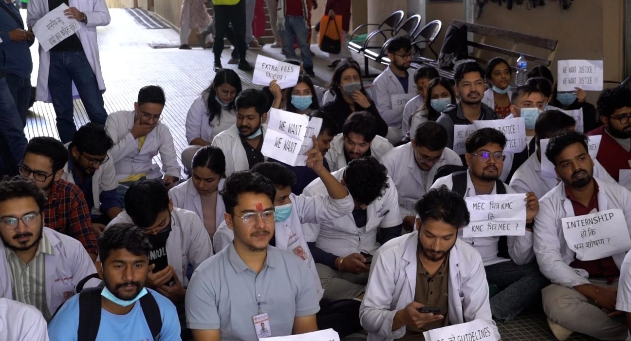 विद्यार्थीहरुले  आन्दोलनमा ईन्टर्नरशिप हो की श्रम शोषण हो भनेर  समेत प्रश्न लेखिएको व्यानर देखाएर आन्दोलन गरेका हुन् ।