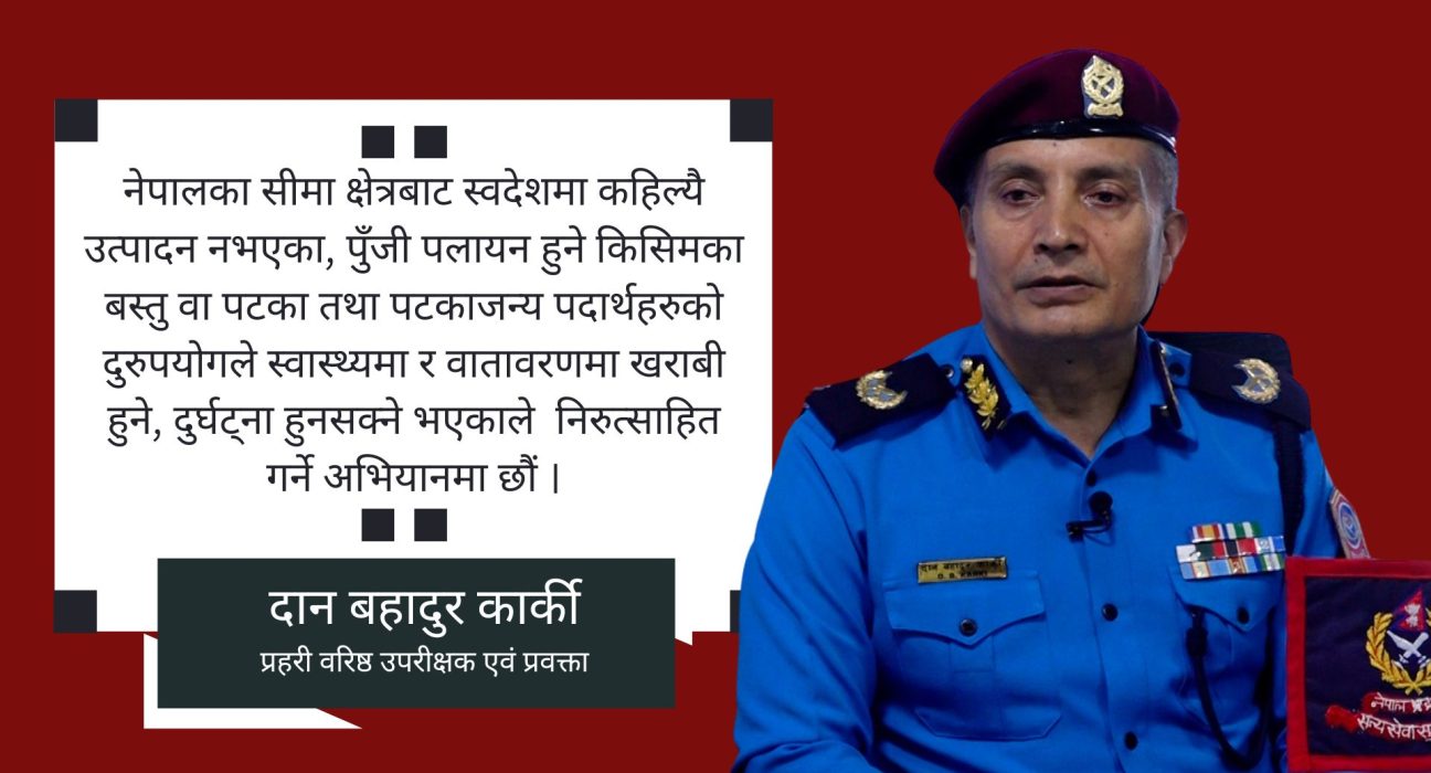 धेरैजसो मानिसहरु चाडवाडमा नै रमाइरहेको बेला तस्करी गर्ने उद्देश्य राखेको हुनसक्छ । सीमा नाकाहरुबाट तस्करी गर्ने गराउने काम नहोस भन्नका लागि प्रहरी शसस्त्र प्रहरी सीमामा नै खटाइन्छ । कतिपय सन्दर्भमा राजस्व चुहावट नियन्त्रण गर्न र राजस्वमा योगदान पु¥याउने हिसाबले पनि त्यस्ता व्यक्तिलाई कानुनी दायरामा ल्याउने गरेका छौं । क्रमशः सुरक्षालाई मजवुद बनाउँदै लगेका छौं । पटकाजन्य वस्तु नेपालमा त उत्पादनहुँदै हुँदैन्, भारतमा नै हुने हो । यस्ता वस्तुले पर्यावरणीय अवस्थामा प्रभाव पारिहेको हुन्छ । जुनसुकै देशमा उत्पादन भएको पटकाजन्य वस्तु ल्याउनेहरुलाई सिमानाकामा नै रोक्न चेक पोइन्टमार्फत कारवाही गर्न र अवैध आयात हुने विक्री एवम भण्डारण गर्नेलाई प्रहरीले कानुनी दायरामा ल्याउने कामा गरिरहेको छ ।