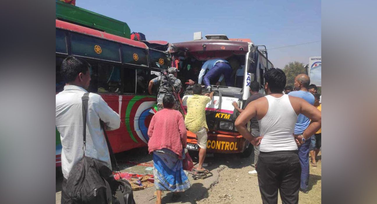 दुई बस एकापसमा ठोक्किँदा १३ जना घाइते