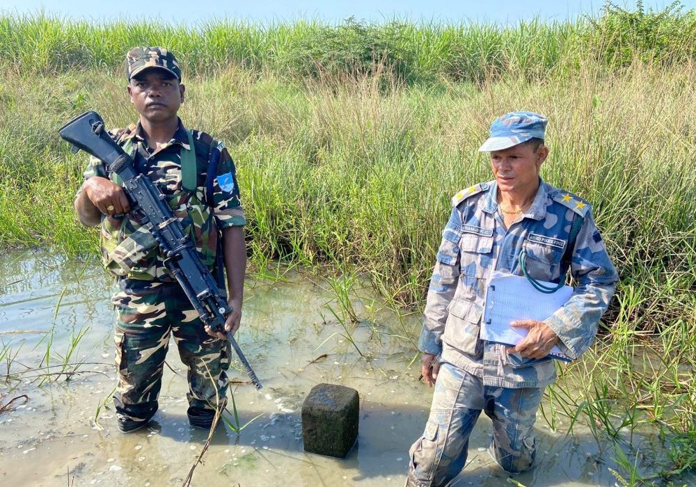 २३ कात्तिक, इनरुवा (सुनसरी) । सुनसरीस्थित सशस्त्र प्रहरी बल–४ नम्बर गण र भारतीय सीमा सुरक्षा बल (एसएसबी)को संयुक्त टोलीले सीमास्तम्भको निरीक्षण गरेको छ ।