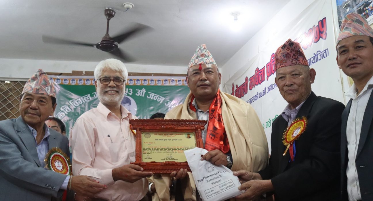 कवि विमल गुरुङको ५३औँ जन्मजयन्तीका अवसरमा कवि विमल गुरुङ स्मृति पुस्तकालय धरानले रु दुई लाख राशिसहितको पुरस्कार प्रदान गरेको हो । धरान उपमहानगरपालिका–१८ स्थित पुस्तकालयको हलमा आज सम्पन्न ३३औँ राष्ट्रिय कविता महोत्सवका अवसरमा आयोजित कार्यक्रममा नेपाल संस्कृत विश्वविद्यालयका उपकुलपति प्रा डा भीम खतिवडा र कवि पुस्तकालयका सञ्चालक पूर्णबहादुर गुरुङले उक्त पुरस्कार प्रदान गरे ।