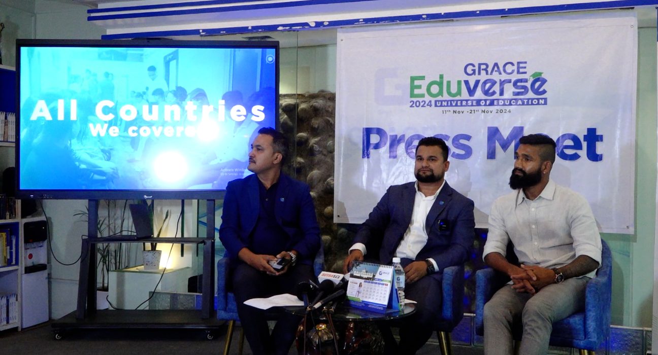 २५ कात्तिक, काठमाडौं । विदेशमा उच्च शिक्षा अध्ययन गर्न चाहने नेपाली विद्यार्थीहरुलाई लक्षित गरी ग्रेस इन्टरनेशनल ग्रुपले ‘एडुभर्स २०२४’ शैक्षिक मेलाको आयोजना गर्ने भएको छ । शनिबार पत्रकार सम्मेलन गर्दै आगामी नोभेम्बर ११ देखि २१ सम्म ९ वटा प्रमुख शहरहरूमा आयोजना गरिने जनाएको हो ।