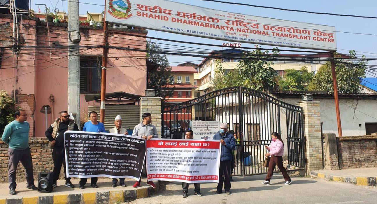 २९ कात्तिक, काठमाडौं । भक्तपुरको सहिद धर्मभक्त राष्ट्रिय प्रत्यारोपण केन्द्रमा भइरहेको वेतिथिविरुद्ध स्थानीयवासीले बिहीबार पनि प्रदर्शन जारी राखेका छन् ।