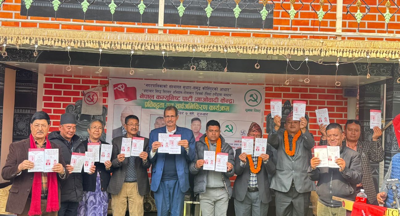 शुक्रबार पार्टी उपाध्यक्ष तथा प्रवक्ता अग्निप्रसाद सापकोटाको उपस्थितिमा माओवादी केन्द्रबाट कीर्तिपुर नगरपालिकाका मेयर र वडाध्यक्षका उम्मेदवारहरुले चुनावी प्रतिबद्धता पत्र सार्वजनिक गरेको हुन् ।