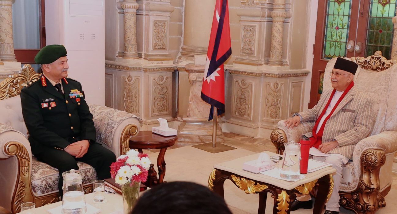 प्रधानमन्त्रीओलीसँग भारतीय सेनाध्यक्ष द्विवेदीको भेट