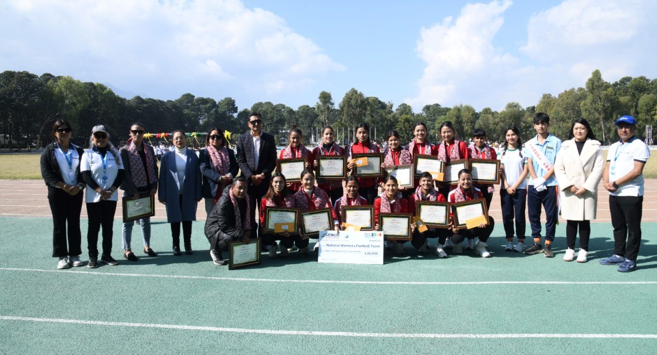 जिनियसद्वारा नेपाली राष्ट्रिय महिला फुटबल टोली नगदसहित सम्मानित
