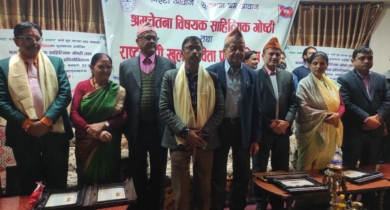 प्रतिनिधिसभा सदस्य एवं पूर्वउपप्रधानमन्त्री विमलेन्द्र निधिको प्रमुख आतिथ्यमा सम्पन्न समारोहमा विभिन्न प्रतियोगी र अप्रतियोगिती कविले श्रम चेतना सम्बन्धी कविता वाचन गरेका थिए ।