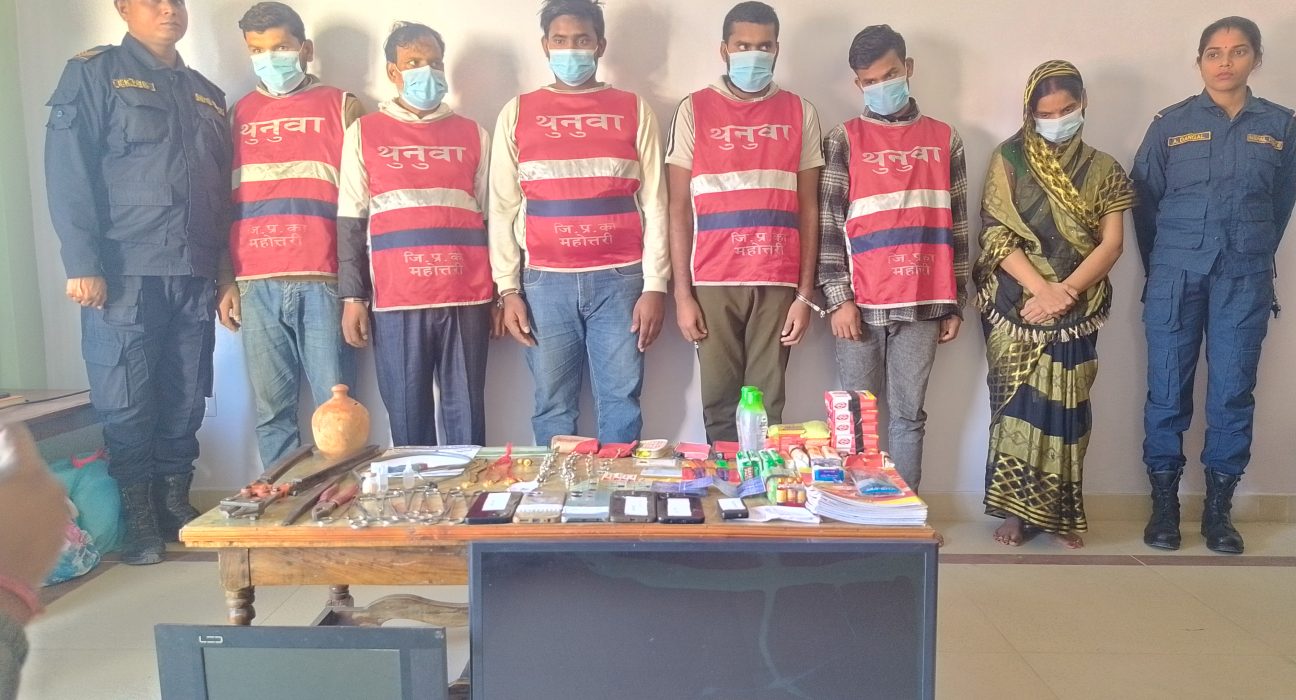 पक्राउ परेका छ जना र अन्य चार जना गरी १० जनाको समूहमा गौशाला र औरही नगरपालिकाको विभिन्न वडामा बन्दुक, पेस्तोल र अन्य घरेलु हतियार प्रयोग गरेर आधा दर्जन बढी चोरी र डकैतीको शृङ्खलाबद्ध घटना घटाएर लाखौँको नगद र सुनचाँदीका गरगहना लुटपाट गरेको प्रहरीले जनाएको छ ।