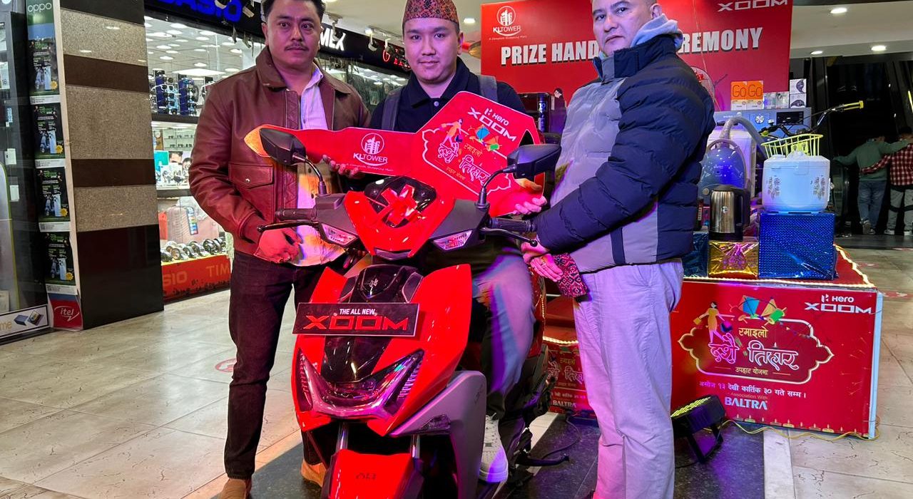 गत असोज १३ गतेदेखि कात्तिक ३० गतेसम्म सञ्चालन गरिएको सो उपहार योजना अन्तर्गतको बम्पर उपहार कुपन नम्बर ६९३९ का फुर्वा शेर्पाले जितेका छन् । सेर्पालाई सिजी मोटर्स प्रालि (हिरो) का सिनियर म्यानेजर प्रदीप पालले स्कुटरको चाबी हस्तान्तरण गरे ।