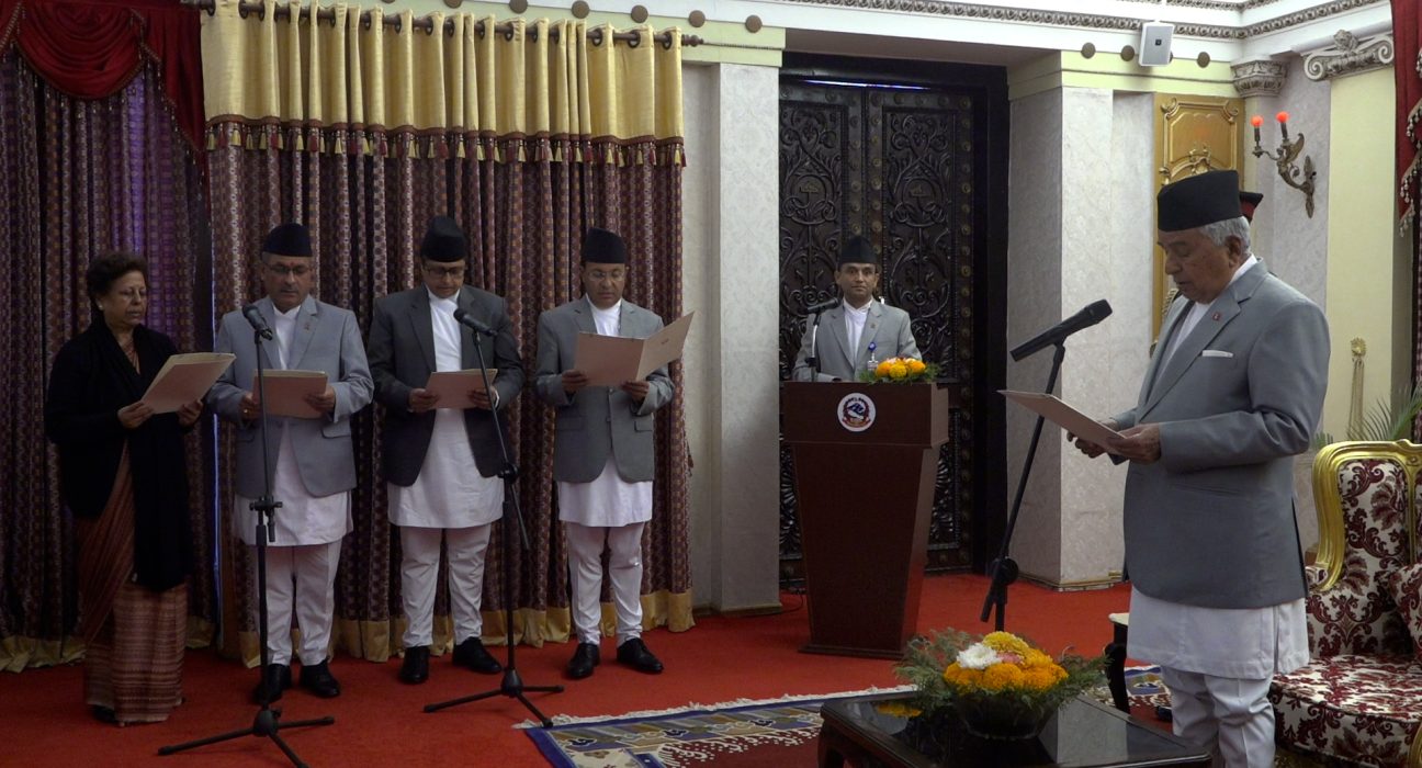 आइतबार बिहान शीतलनिवासमा आयोजित समारोहमा राष्ट्रपति पौडेलसमक्ष अमेरिकाका लागि नेपाली राजदूतमा लोकदर्शन रेग्मी, जर्मनीका लागि डा.शैल रुपाखेती, साउदी अरबका लागि डा.नरेशविक्रम ढकाल र अस्ट्रेलियाका लागि चित्रलेखा यादवले शपथ ग्रहण गरेका हुन् ।