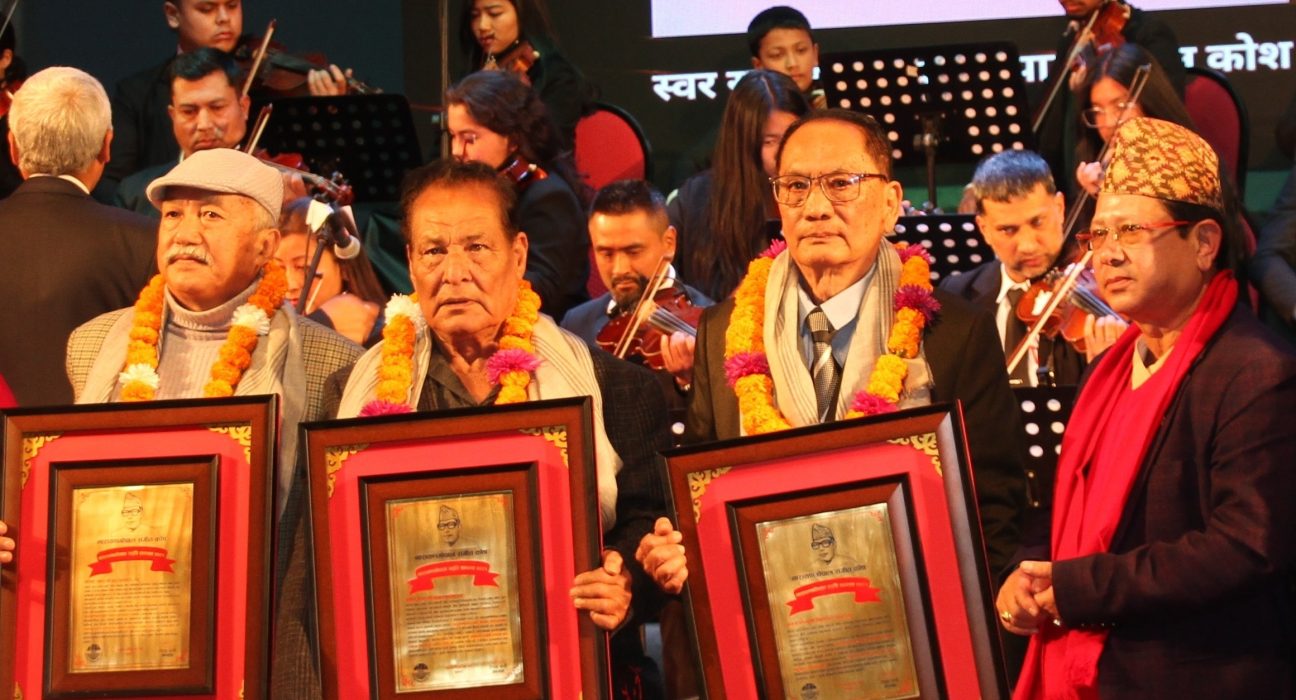 २० मङ्सिर, काठमाडौँ । स्वरसम्राट नारायण गोपालको ३४औँ स्मृति दिवसका अवसरमा तीन श्रष्टालाई सम्मान गरिएको छ । नारायण गोपाल सङ्गीत कोषले बुधबार साँझ एक कार्यक्रम आयोजना गरी ‘नारायण गोपाल स्मृति सम्मान २०८१’ मार्फत सङ्गीततर्फ सङ्गीतकार बुलु मुकारुङ, गायनतर्फ कुमार बस्नेत र गीत रचनातर्फ शिवशङ्कर थापालाई सम्मान गरिएको हो ।