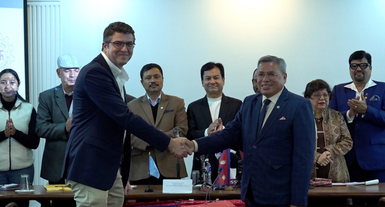 काठमाडौंको जमलस्थित चेम्बर भवनमा सोमबार आयोजित कार्यक्रममा चेम्बर अध्यक्ष कमलेश कुमार अग्रवाल र युएनडीपीका कार्यबहाक आवासीय प्रतिनिधी जुलिएन चेभिलार्डले हस्ताक्षर गरेका हुन् ।
