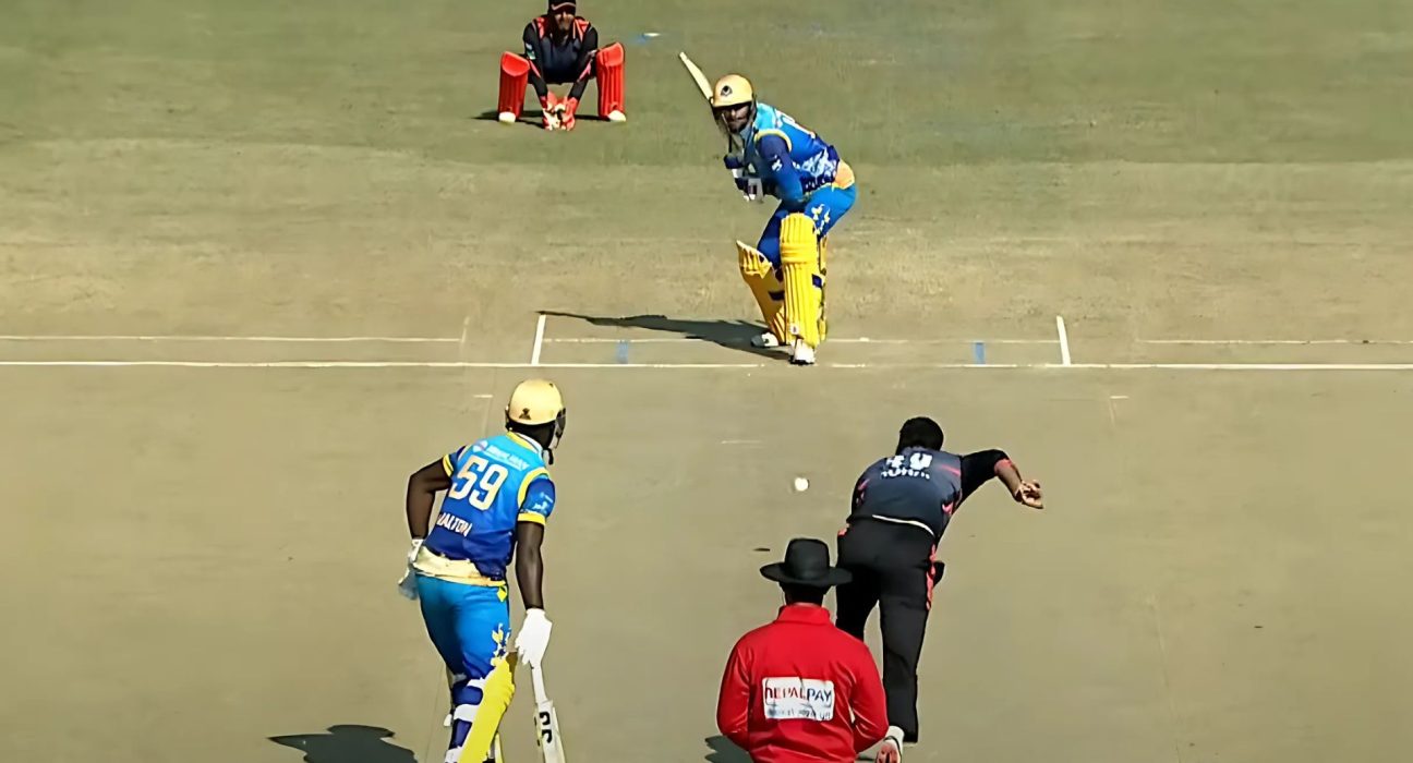 चाल्डिक वाल्टन २२ बलमा ४ चौका र ३ छक्काको सहयोगमा ४६ रन जोड्दै नट आउट रहे । देव खनाल ३ बलमा ३ रन जोड्दै रन आउट भए ।