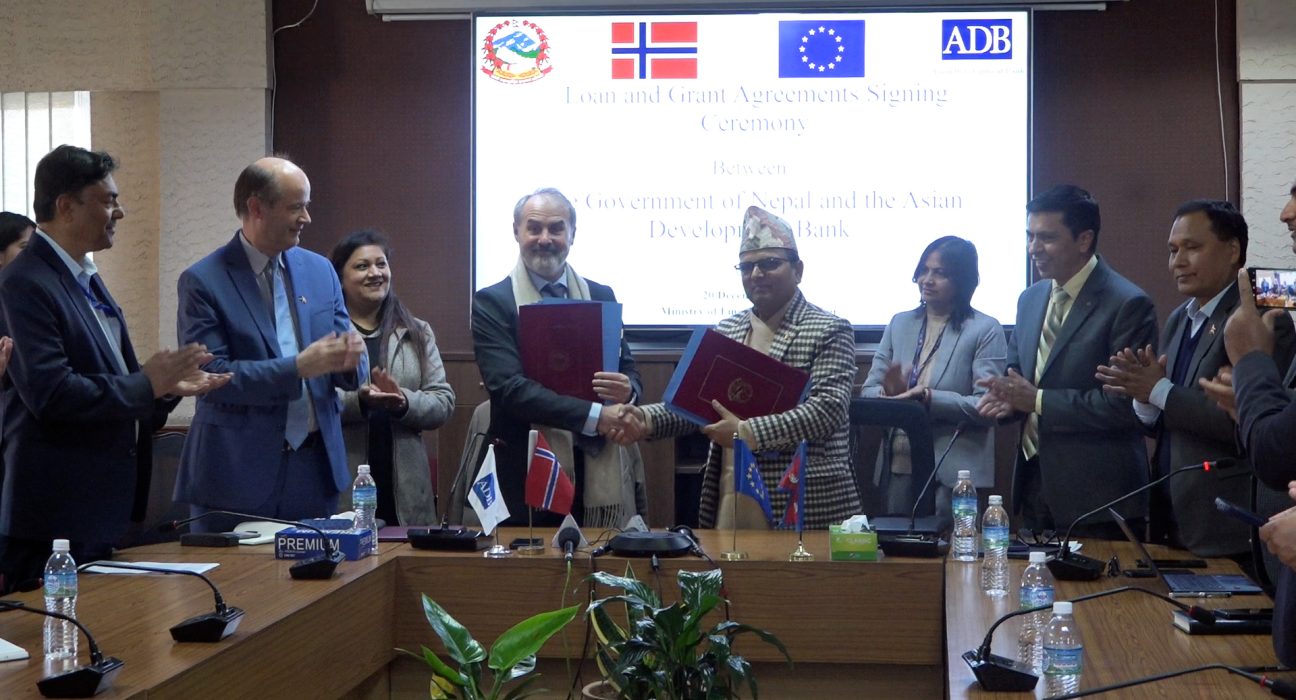 शुक्रबार नेपाल सरकार र एसियाली विकास बैंकबीच ७७ करोड ७६ लाख अमेरिकी डलर (रु १०५ अर्ब ५९ करोड) बराबरको ऋण तथा अनुदान सम्झौता भएको हो ।