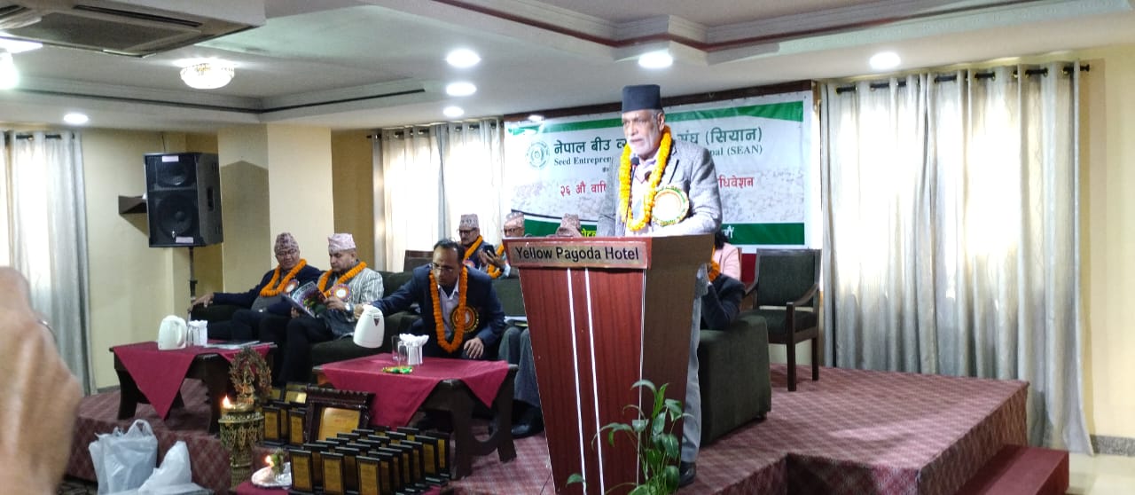 काठमाडौमा नेपाल बीउ व्यवसायी संघको २६ औ साधरणसभा तथा अधिवेशनलाई सम्बोधन गर्दै उनले कृषि क्षेत्रको आधारस्तम्भ बीउ भएकाले समयमै गुणस्तरीय बीउ किसानलाई उपलब्ध गराउन व्यवसायीले ध्यान पुर्याउन आवश्यक रहेको भन्दै मन्त्री अधिकारीले यसका लागि सरकारी, निजी तथा सहकारी क्षेत्रको भूमिका महत्वपूर्ण हुने बताए ।