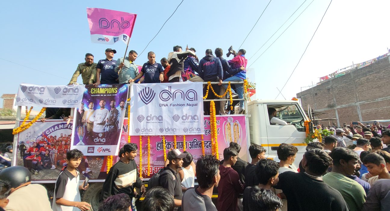 मधेश प्रदेशको सबै आठ जिल्लामा चार दिने ‘ट्रफी परेड’ गरिरहेको जनकपुर बोल्टसका खेलाडीलाई शुक्रबार जनकपुरधाममा भव्य स्वागत गरिएको छ ।