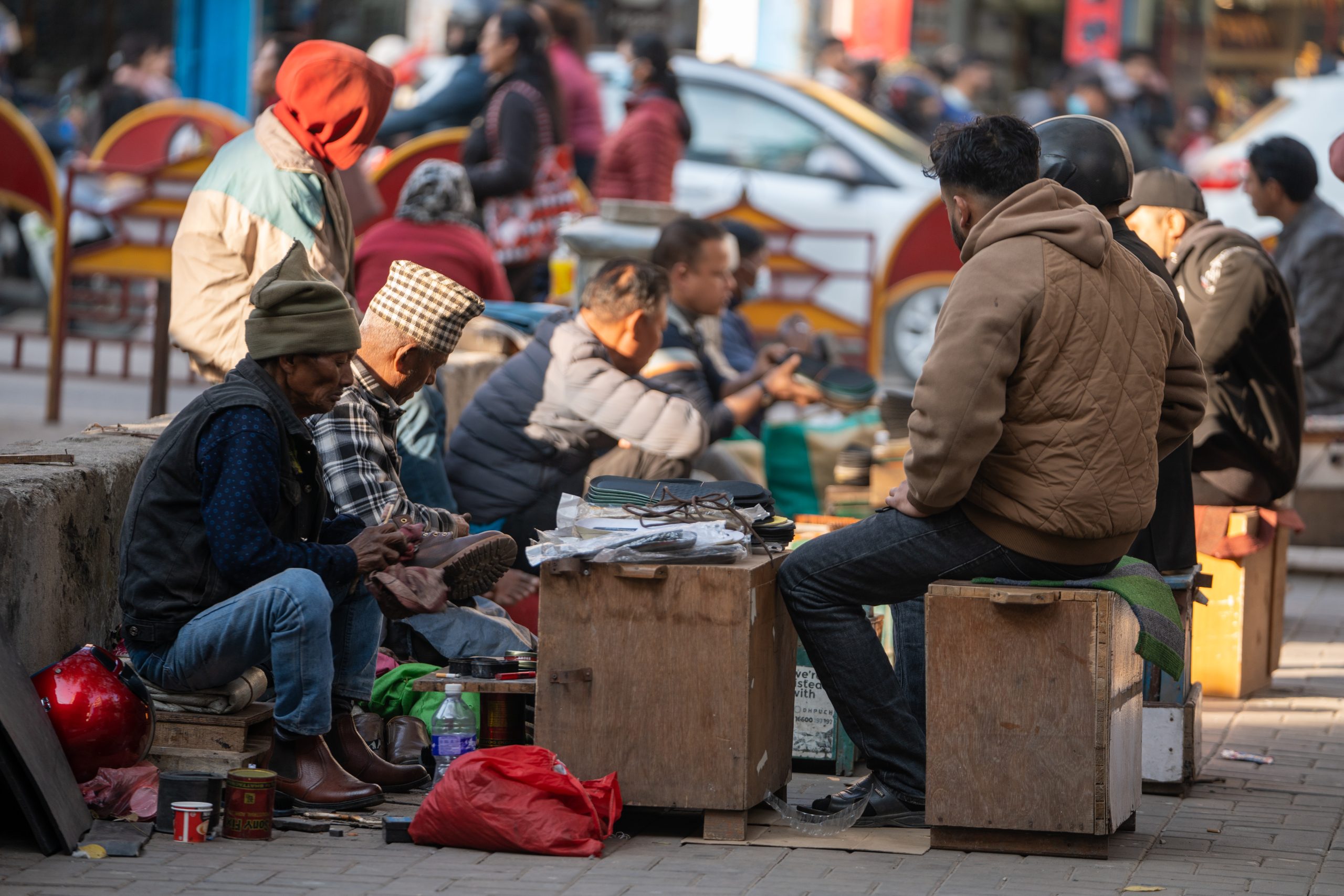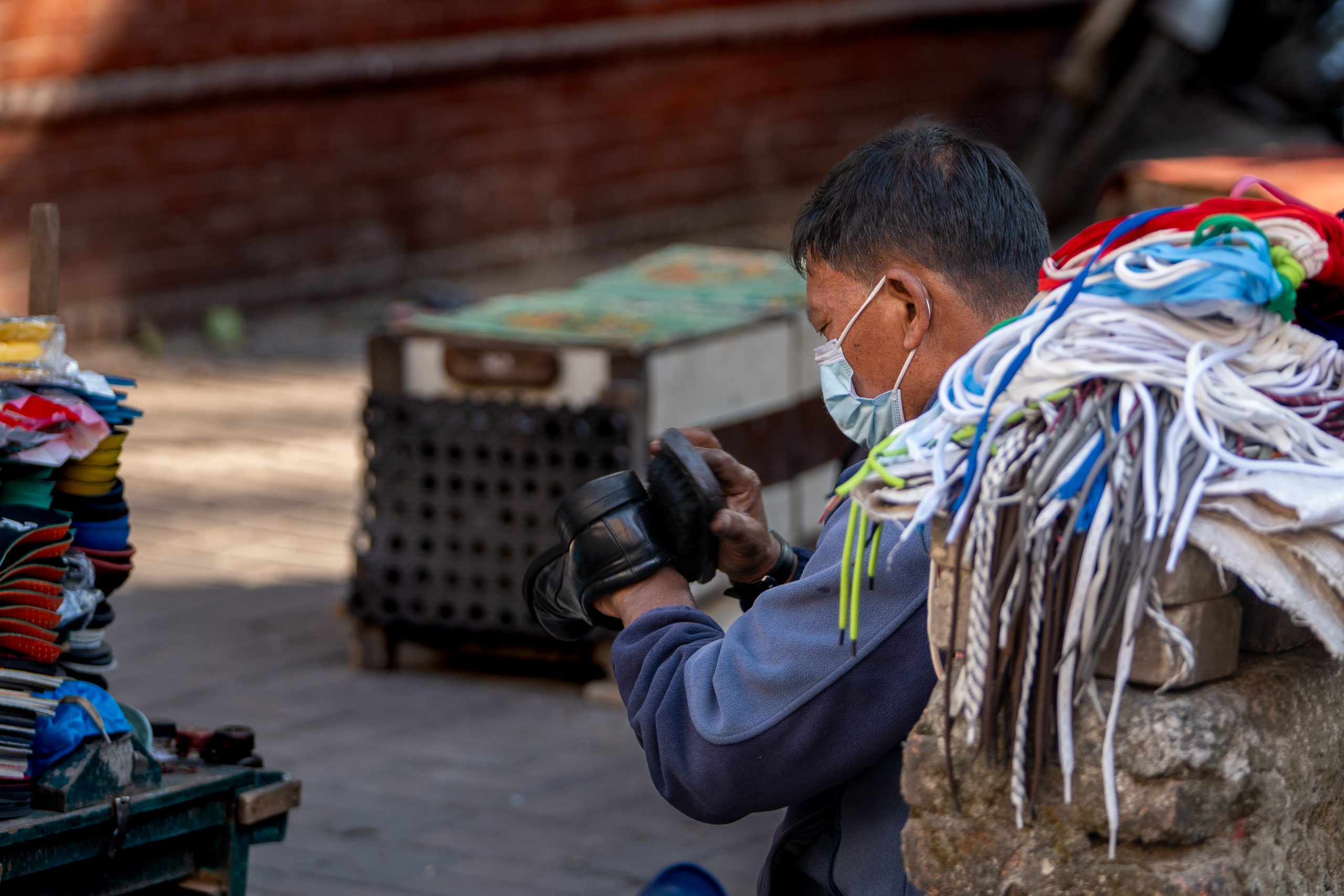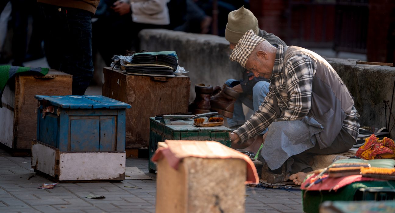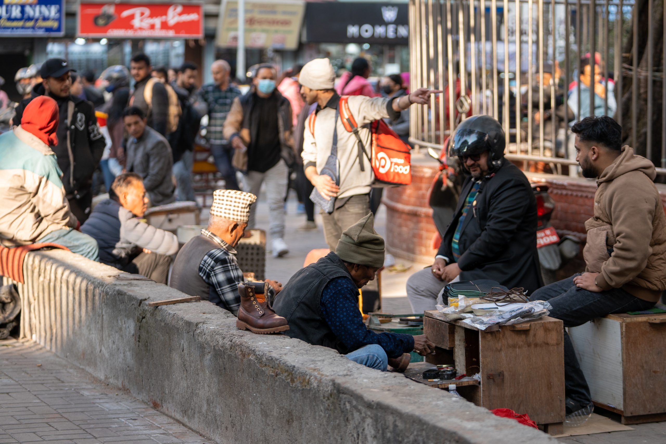 व्यस्त न्यूरोडमा जुत्ता चम्काउँदै (तस्विरहरु)