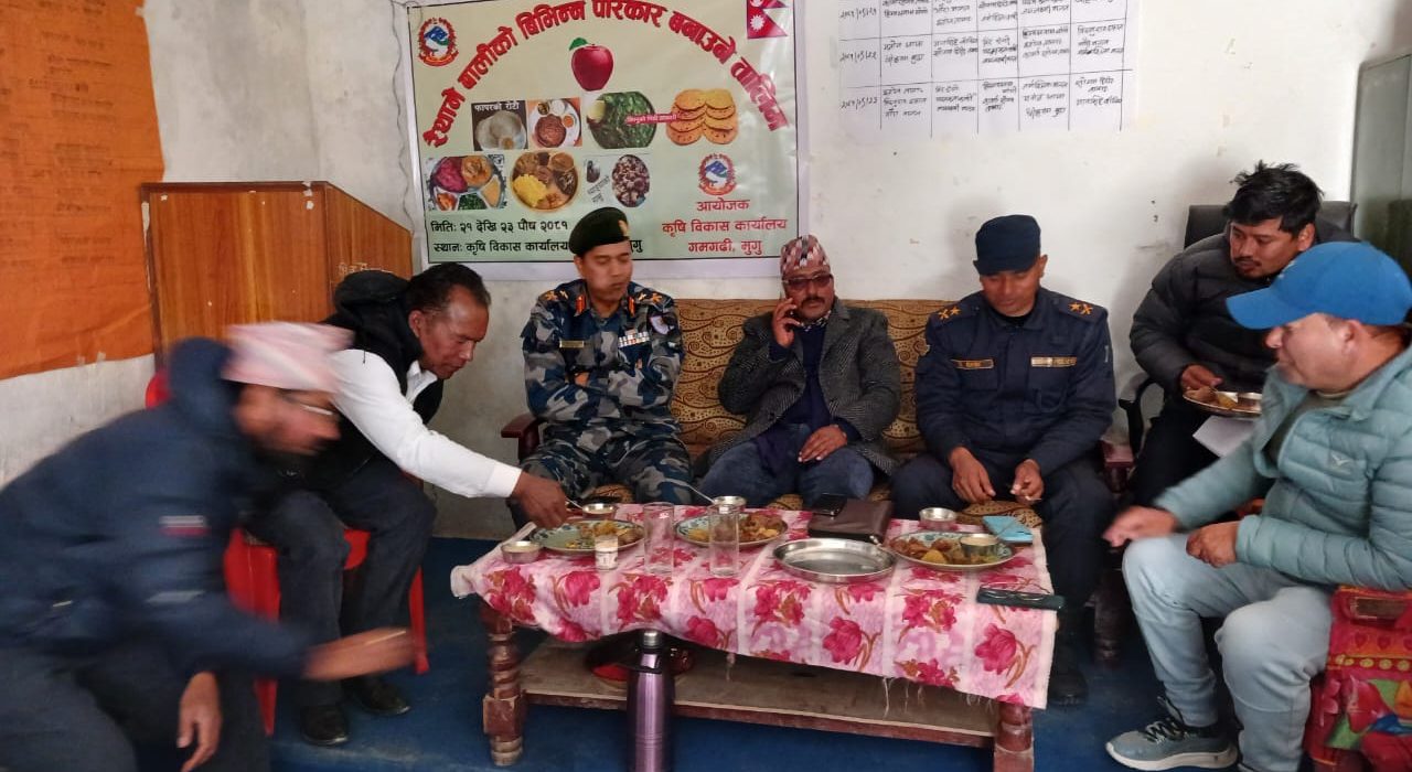 मुगु । रैथाने बालीको परिकार तयार गरेर स्थानीय व्यवसायहरुले त्यसको प्रदर्शनी गरेका छन् । रैथाने बालीका अन्न,प mलफूलबाट नयाँ किसिमका परिकार तयार गरी उपभोग गर्न र बिक्री गरेर आम्दानी गर्न सकिने भन्दै तालिममा सिकेका वस्तुहरुको प्रदर्शनी गरिएका हुन् ।