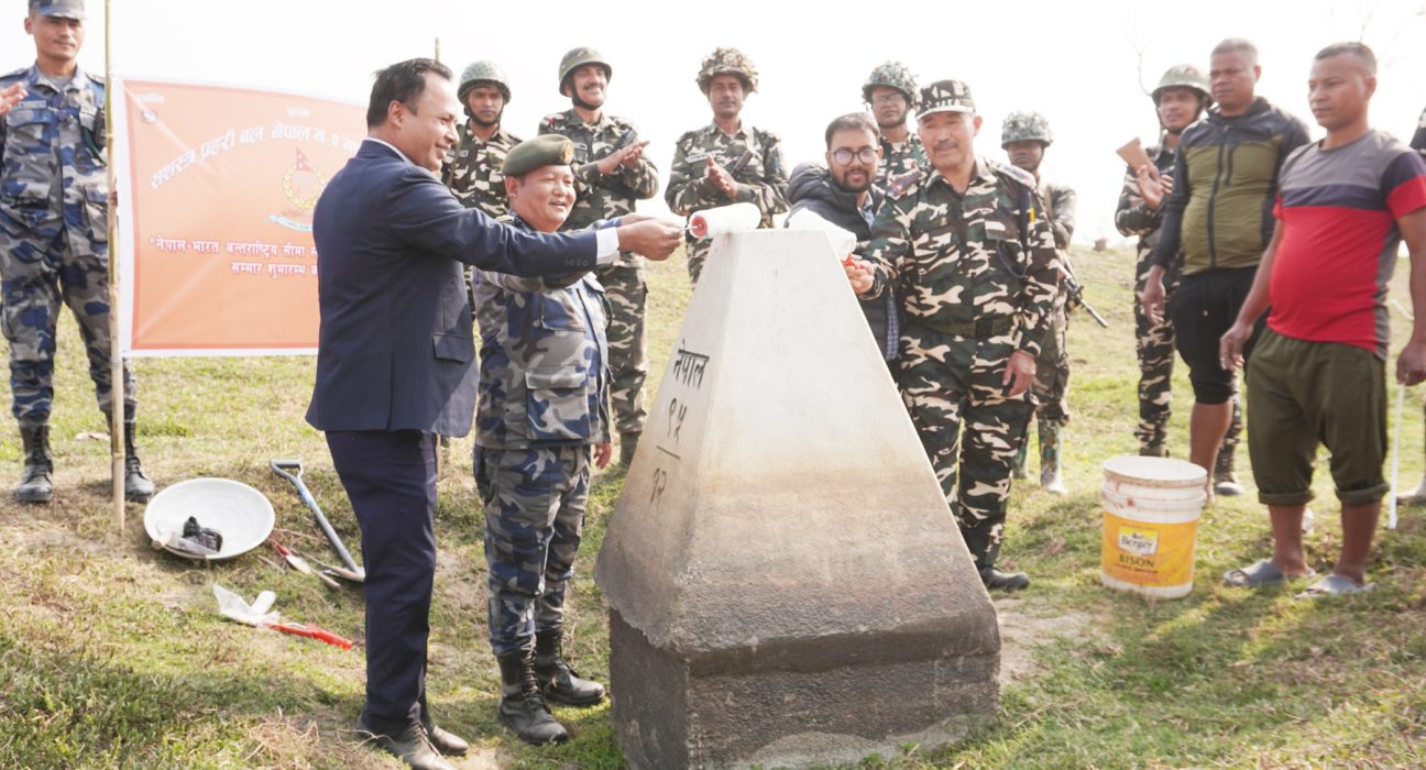 नेपाल–भारत ‘बाउन्ड्री वर्किङ ग्रुप’को निर्णानुसार नेपालकातर्फबाट मर्मतसम्भार गरिने बिजोर नम्बरका सीमास्तम्भ मर्मत थालिएको सशस्त्र प्रहरी बल नेपाल नम्बर २ गण, झापाका गणपति सशस्त्र प्रहरी उपरीक्षक कविन्द्र राईले जानकारी दिए । मेचीनगनर नगरपालिका–१५ सिसुवाडाँगीस्थित सानो सीमास्तम्भ नं ९५÷१२ बाट मर्मतसम्भार कार्य थालिएको उनले बताए । a