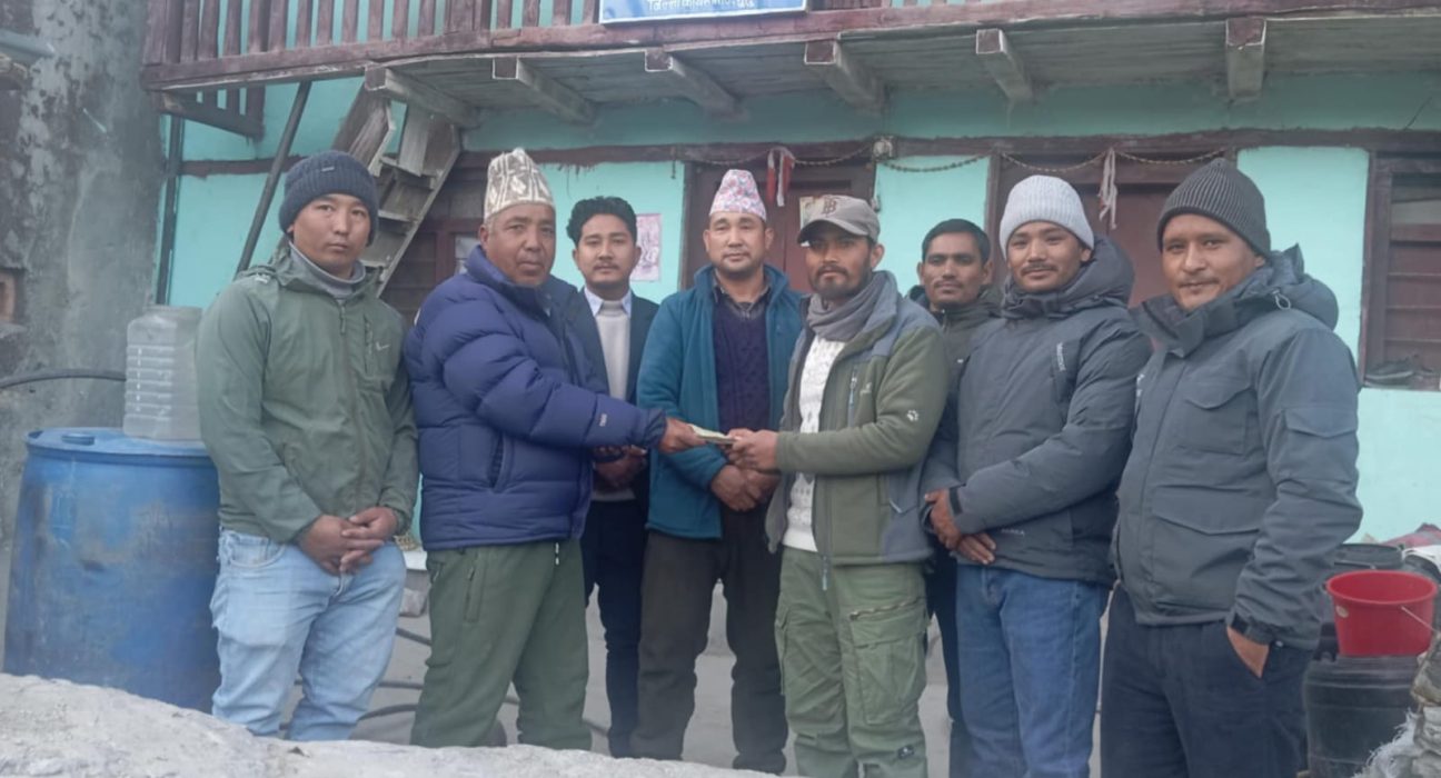 मनकारी कर्मचारीबाट एक लाख रकम संकलन गरेको र त्यही रकममध्येबाट जटिल रोगका बिरामी मुगुम कार्मारोङ गाउँपालिका–५ सरोग गाउँका उर्गिन टोमा लामालाई १५ हजार, छायाँनाथ रारा नगरपालिका १३ लुमका बिग्नेश खड्कालाई २२ हजार, सोरु गाउँपालिका तीन भिई गाउँका अशोकलाल बुमीलाई २२ हजार, सोरु गाउँपालिका–४ लिब्रु गाउँका दानबहादुर बुढालाई १५ हजार र सोरु गाउँपालिका ९ खनाय गाउँका अभिराज शाहीलाई २२ हजारका दरले रकम सहयोग गरेको अध्यक्ष लामाले बताए ।