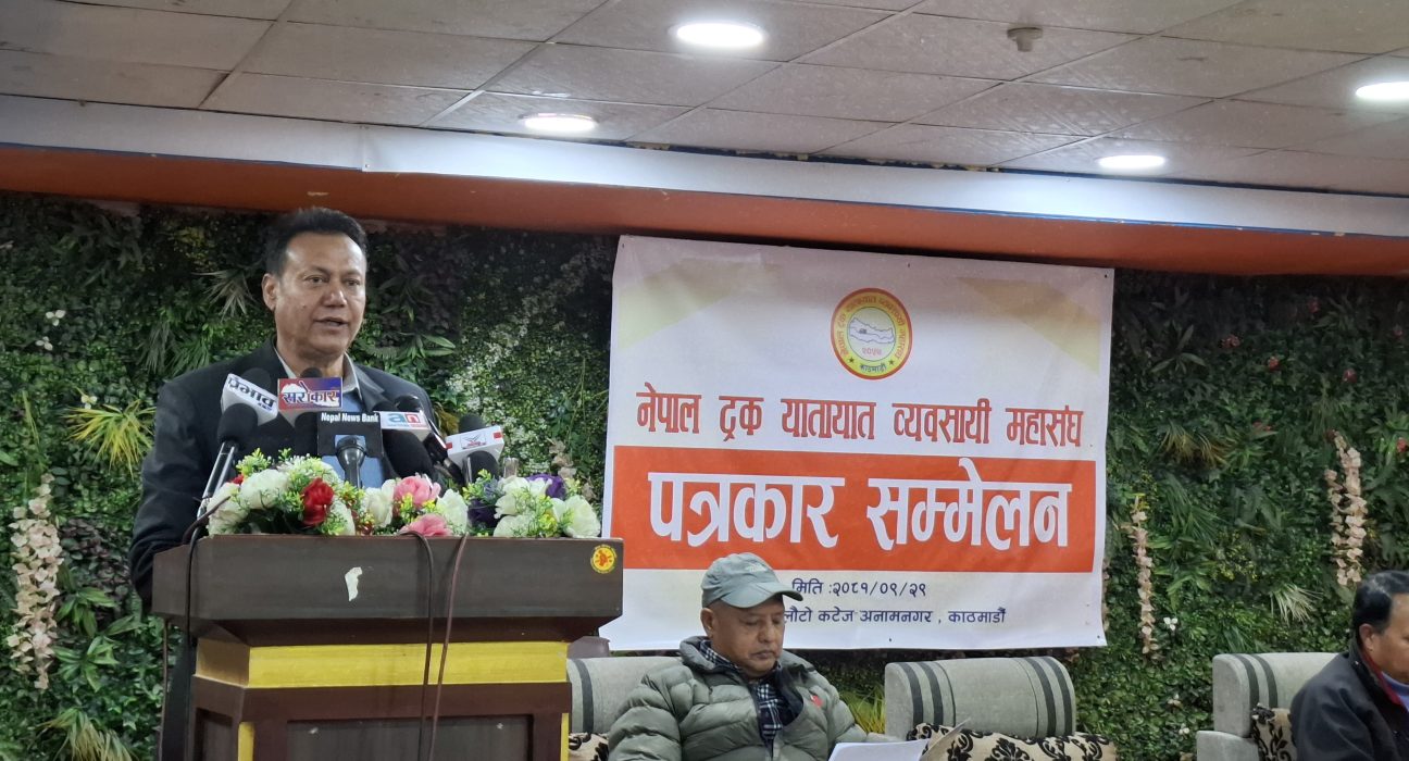 २९ पुस, काठमाडौँ । नेपाल ट्रक यातायात व्यवसायी महासङ्घले मालवाहक सवारी साधन भारवहन नियमनसम्बन्धी कार्यविधि–२०७४ लाई कडाइका साथ कार्यान्वयन गर्न आग्रह गरेको छ। महासङ्घद्वारा आज यहाँ आयोजित पत्रकार सम्मेलनमा ७२ घण्टे प्रवेश पास खारेज गर्न माग समेत गरिएको छ । महासङ्घका महासचिव राजेन्द्रविक्रम बानियाँले भन्सार विन्दुमा नै नेपालको कानुनले तोकेको भारवहन क्षमता जाँच पास गर्ने अधिकारीलाई जिम्मेवार बनाउन आग्रह गरे । उसले भने, “जीर्ण पुल र जोखिमयुक्त सडकमा स्पष्ट देखिने गरी सडकको क्षमता र चिह्न राखिनुपर्छ । ”