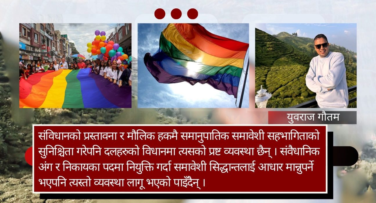 नेपालको संविधानले लिङ्ग खुलाएर नागरिकता तथा राहदानी लिन पाउने र महिला वा पुरुष मात्र लेख्ने होइन, ‘अन्य’ लिङ्गी पनि लेख्न मिल्ने व्यवस्था पनि गरिसकेको छ । अन्य नीति, ऐन कानुनले पनि यो समूदायलाई समेटेको पाइन्छ । संविधानको यस्तो व्यवस्थाले यस समुदायका मानिसहरुलाई आफ्नो पहिचान खुलाएर समाजमा स्थापित गराउन प्रेरित गरेको छ । यौनिक तथा लैङ्गिक अल्पसंख्यकको मुद्दालाई संविधानमै समावेश गर्ने नेपाल तेस्रो मुलुकका रुपमा परिचित पनि भएको छ ।