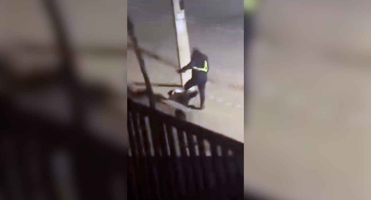 मोटरसाइकलको लाइसेन्स चेक गरिरहेको र त्यसपछि सडकपेटी छेउमा सेतो सर्टमा रहेका मानिसलाई प्रहरीले बुटले पटकपटक हानेको भिडियोमा छ ।