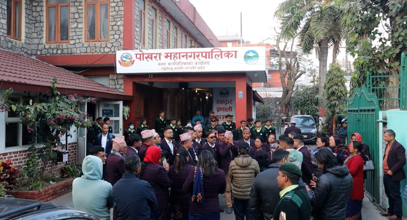पोखरा । नेपाली कांग्रेस पक्षीय नगर सभासदहरुले पोखरा महानगरपालिकाको मेयर, उपमेयर र प्रमुख प्रशासकीय अधिकृतको कार्यकक्षमा तालाबन्दी गरेका छन् ।