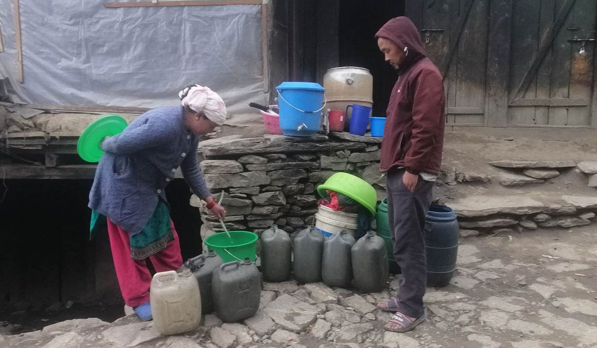 ९ माघ, सिमकोट (हुम्ला) । हुम्लाको सदरमुकाम सिमकोटमा यतिबेला खानेपानीको समस्या भएको छ । सिमकोट गाउँपालिकाको पालिका केन्द्र रहेको सदरमुकाममा खानेपानीका धारामा पानी नआएपछि सेवाग्राहीले समस्या भोग्नुपरेको छ । सिमकोट तल्लो बजारमा धारामा पानी आउन छाडेपछि घण्टाँै लाइन बसेर एक बाल्टी पानी थाप्नुपर्ने अवस्था आएको स्थानीय लक्ष कामीले बताए ।
