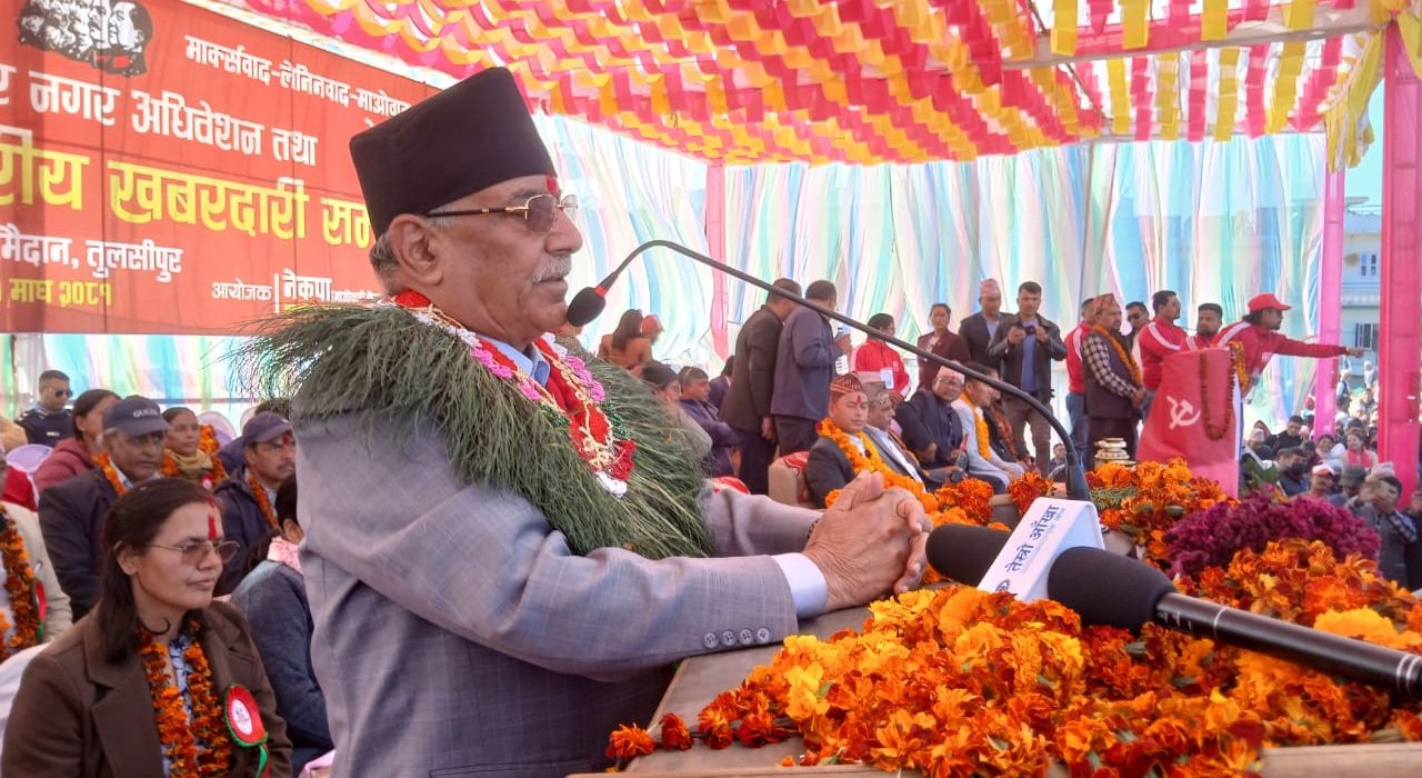 माओवादी केन्द्रले तुलसीपुर नगरकमिटीले तलसीपुमा आयोजना गरेको पार्टीको तेस्रो नगर अधिवेशन उद्घाटन तथा खबरदारी सभालाई सम्बोधन गर्दै अध्यक्ष प्रचण्डले सो कुरा बताएका हुन् ।