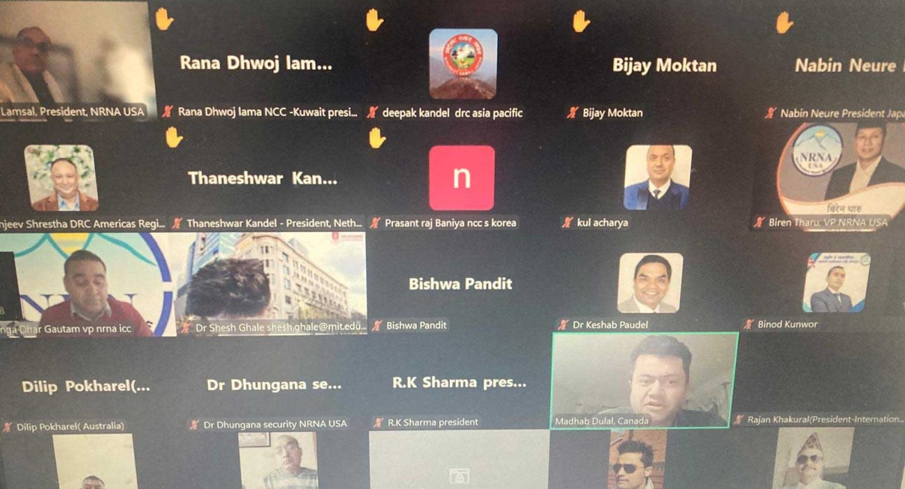 काठमाडौं । गैर आवासीय नेपाली सङ्घ (एनआरएनए)को एकताको महाधिवेशन गराउने जिम्मेवारी पाएको डा.शेष घले नेतृत्वको उच्चस्तरीय समितिले विश्वभरका गैर आवासीय नेपालीहरूसँग भर्चुअल संवाद गरेको छ । काठमाडौँमा आगामी २०८२ वैशाख २० देखि २२ गते सम्म (मे ३–५, २०२५)एकताको महाधिवेशन आयोजना गर्ने मिति तोकेर काम अघि बढाएको समितिले औपचारिकरुपमा छलफल आयोजना गरेको हो ।