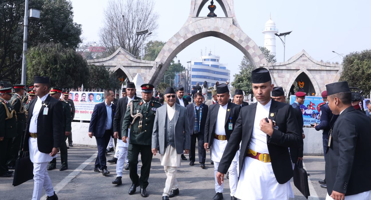 सो क्रममा उपप्रधानमन्त्री, मन्त्रिगण, विभिन्न राजनीतिक दलका सांसद, नेपाल सरकारका मुख्यसचिव, सुरक्षा अङ्गका प्रमुख, काठमाडौँ महानगरपालिकाका उपप्रमुखलगायले सहिदहरूप्रति श्रद्धाञ्जली प्रकट गरे । प्रधानमन्त्री ओलीको प्रमुख आतिथ्यतामा सिंहदरबार परिसरमा अहिले सहिद दिवस विशेष समारोह आयोजना भैरहेको छ ।