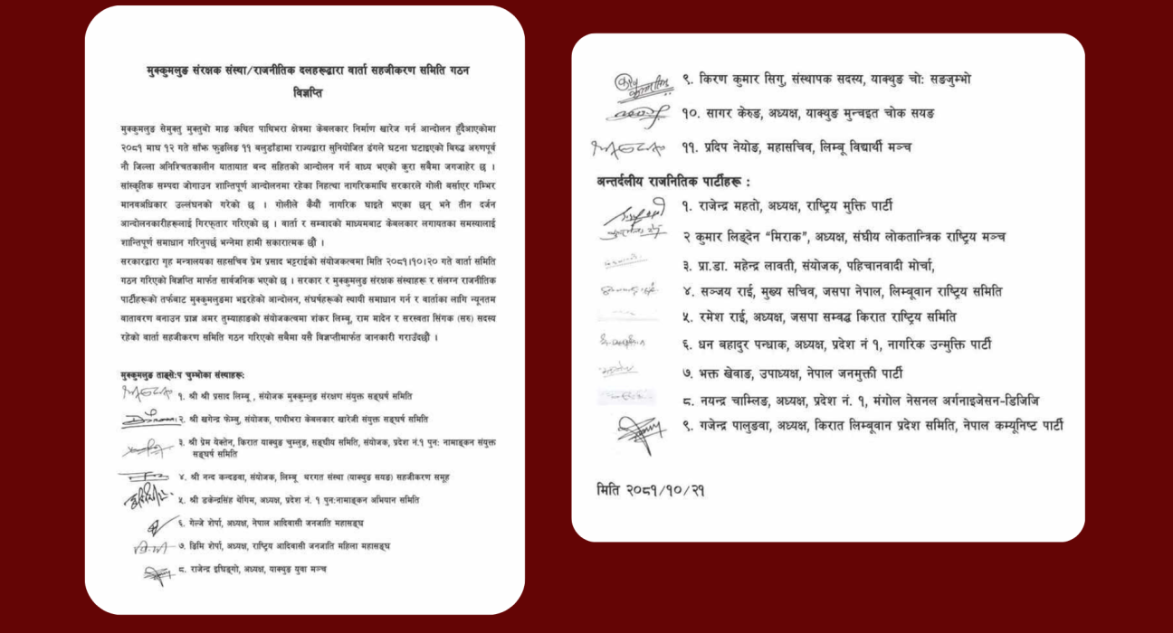 आन्दोलनरत पक्षले अमर तुम्याहाङको संयोजकत्वमा वार्ता टोली गठन गरेको हो । वार्ता टोलीमा राम मादेन, सरु सिङ्घक र शङ्कर सुब्बा सदस्य रहेका छन् ।