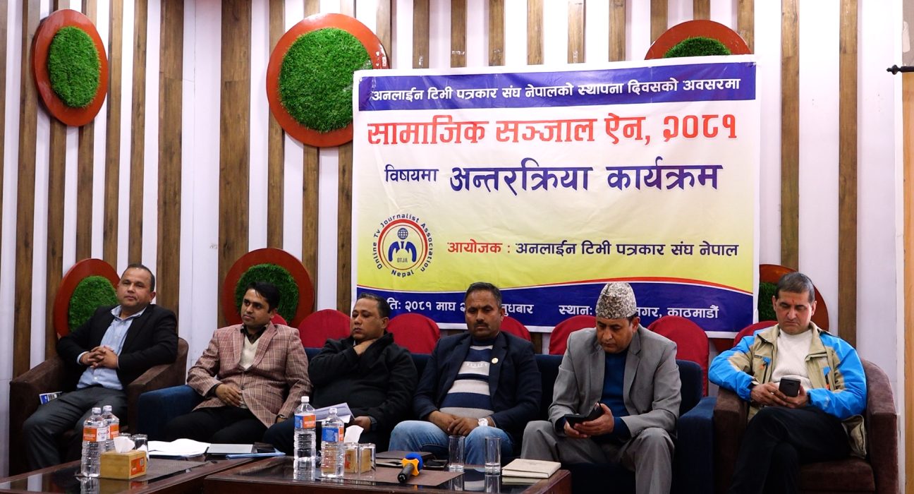 काठमाडौं । सरकारले राष्ट्रिय सभामा दर्ता गराएको सामाजिक सञ्जाल विधयेक २०८१ संशोधन गर्नुपर्ने माग गर्दै अनलाइन टिभी पत्रकार संघले आन्दोलनको घोषणा गरेको छ ।