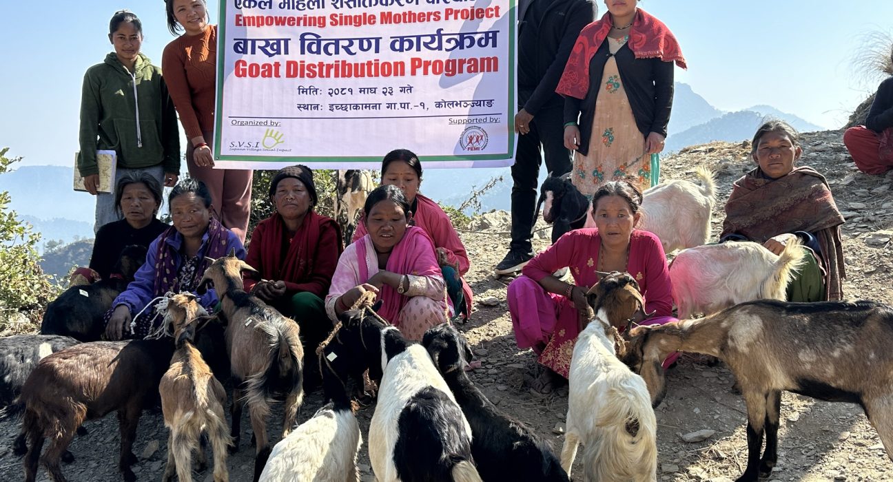 मुग्लिन चितवन, २४ माघ । इच्छाकामना गाउँपालिका वडा नम्बर–१ का १० जना सीमान्तकृत चेपाङ समुदायका एकल महिलालाई सपना भिलेज सोसियल इम्प्याक्टले आयआर्जनका लागि बाख्रा वितरण गरेको छ । सशक्तीकरण परियोजनामार्फत हरेकलाई बुधबार उपहारस्वरूप बाख्रा प्रदान गरिएको हो ।