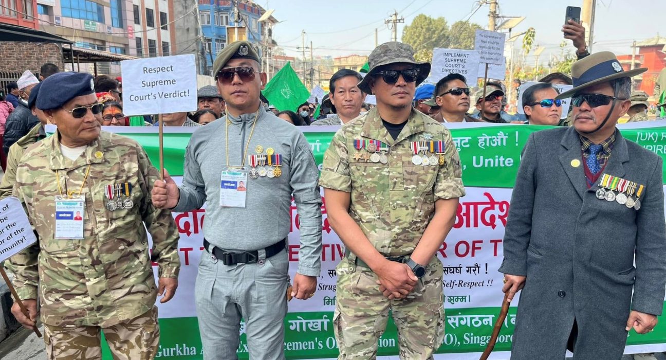 काठमाडौँ । सर्बोच्च अदालतले नेपाल सरकारका नाममा गरेको निर्देशनात्मका आदेश कार्यान्वयन नगरेको भन्दै ब्रिटिस गोर्खा भूपु सैनिकहरुले सडकमा मार्चपास गरेका छन् ।