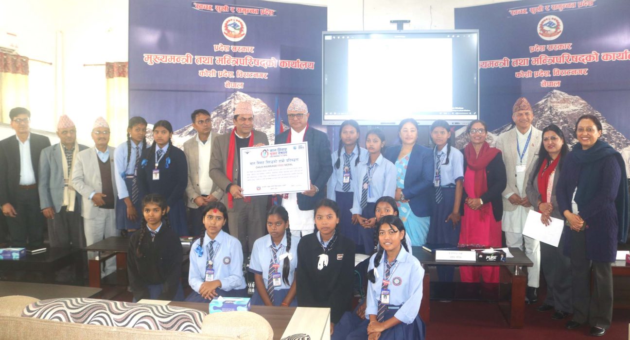 जस्ट राईट फर चिल्डेन इन नेपालद्वारा मुख्यमन्त्री एवं मन्त्रिपरिषद्को कार्यालय विराटनगरमा आज आयोजित ‘बालविवाह विरुद्ध प्रतिबद्धतापत्र’मा हस्ताक्षर गर्दै उनले बालविवाहका कारण बालिकाको मानसिक एवं शाररिक स्वास्थ्यमा गम्भीर असर पर्ने भएकाले यसको नियन्त्रणमा समाजका सबै व्यक्ति जिम्मेवारपूर्वक लाग्नुपर्नेमा जोड दिए ।