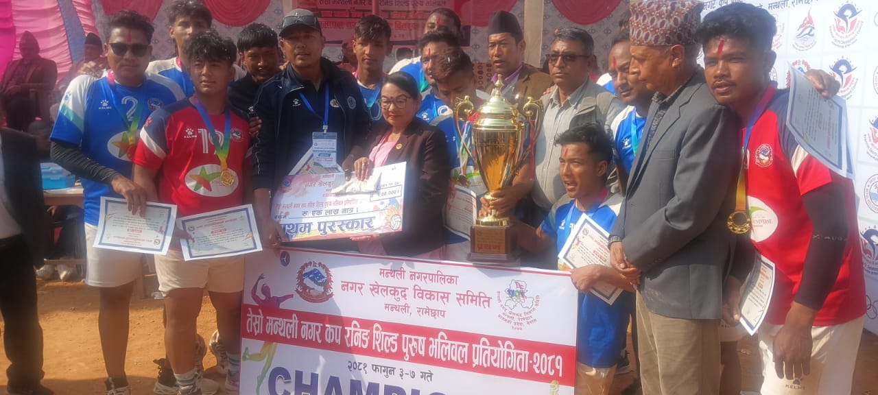 विजयी टिम र खेलाडीलाई मन्थली नगरपालिका प्रमुख लब श्रेष्ठ, उपप्रमुख ईश्वरी बस्नेत लगायतले सिल्ड, मेडल र प्रमाणपत्र वितरण गरेका थिए ।