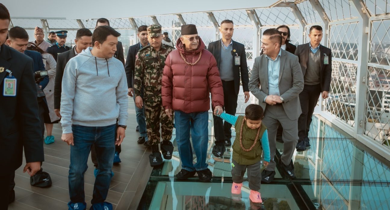 काठमाडौँ, ७ फागुन । प्रधानमन्त्री केपी शर्मा ओलीले काठमाडौँको कमलादीस्थित स्वाइवाक टावरको अवलोकन गरेका छन्।